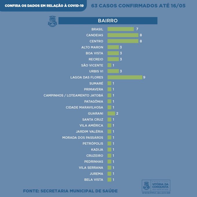 O bairro Lagoa das Flores continua com o maior número de casos de coronavírus em Vitória da Conquista.