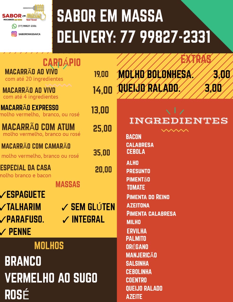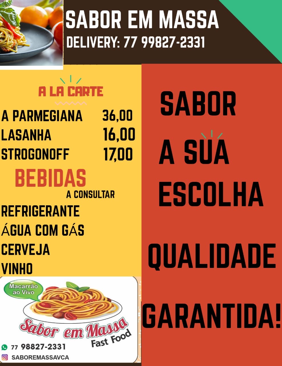Novidade em Vitória da Conquista! Chegou o delivery Sabor em Massa Fast Food, para os amantes de uma boa massa.