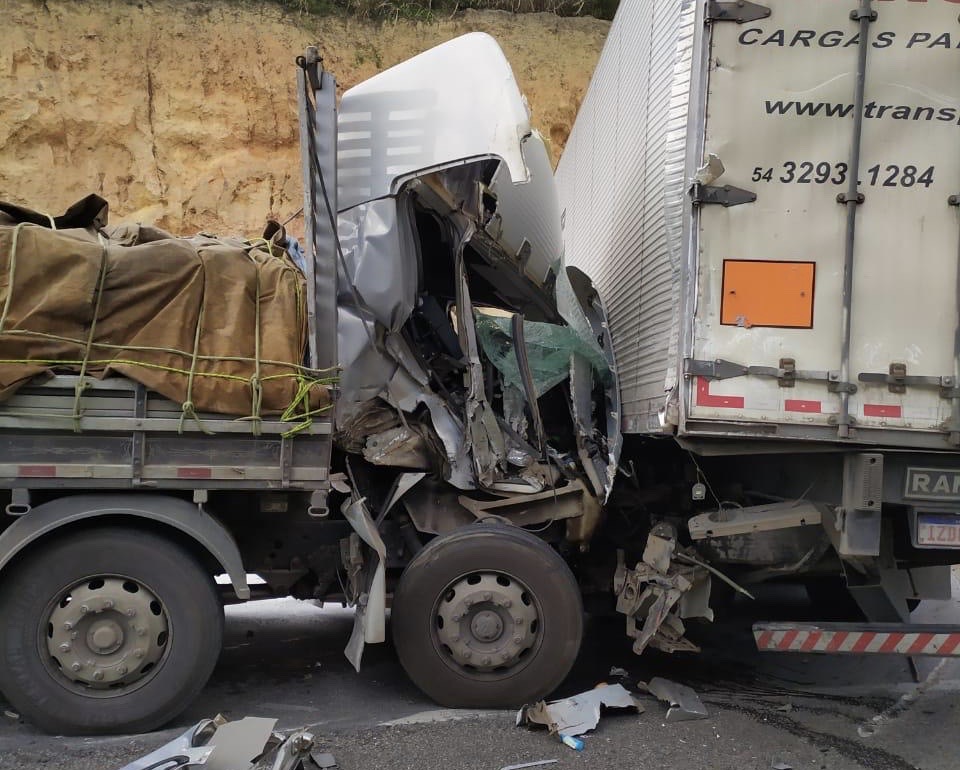 Segundo informações obtidas pela nossa reportagem, os dois veículos desciam a serra quando a carreta atravessou a pista e ficou em “L”. O caminhão não teria conseguido frear a tempo e bateu.