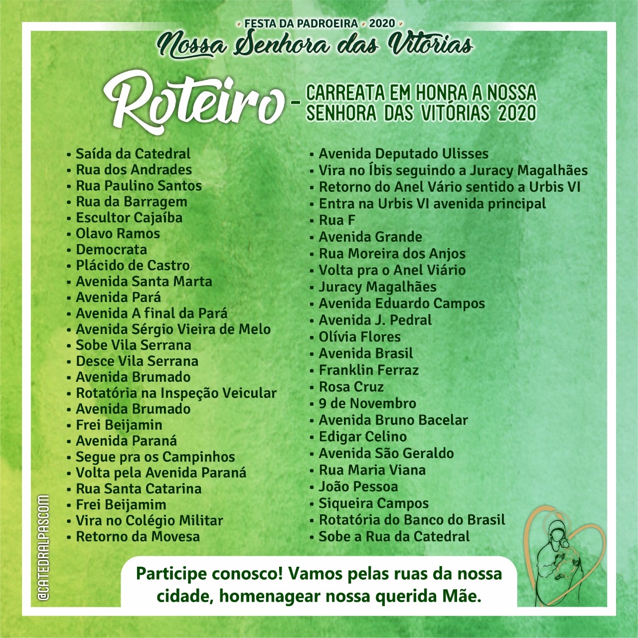 Depois da transmissão da missa, haverá a tradicional carreata, que neste ano sairá da Catedral.