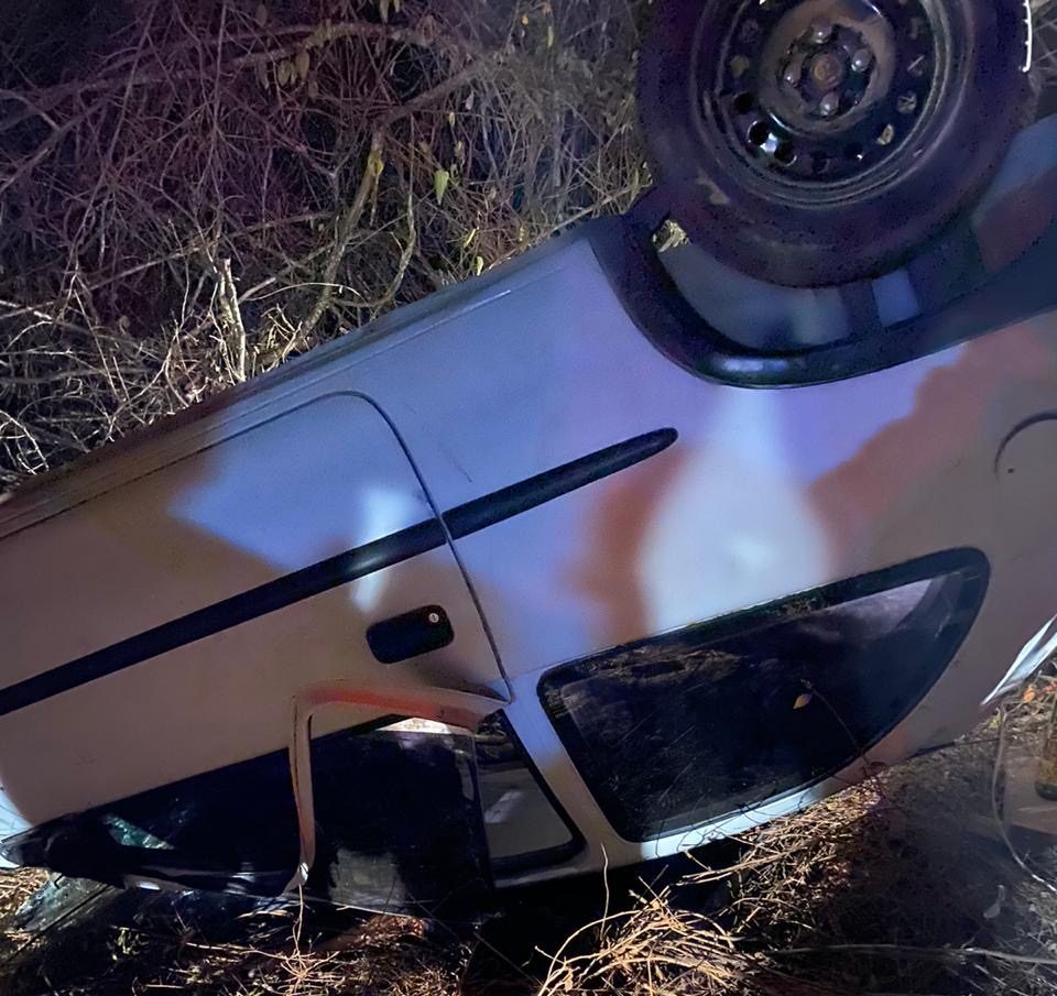 O motorista de um carro de passeio perdeu o controle e o veículo capotou.