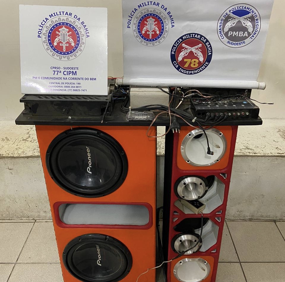 Policiais da 78° CIPM acabaram com uma aglomeração e apreenderam dois aparelhos de som, na madrugada desta terça-feira (13), no bairro Campinhos, em Conquista.