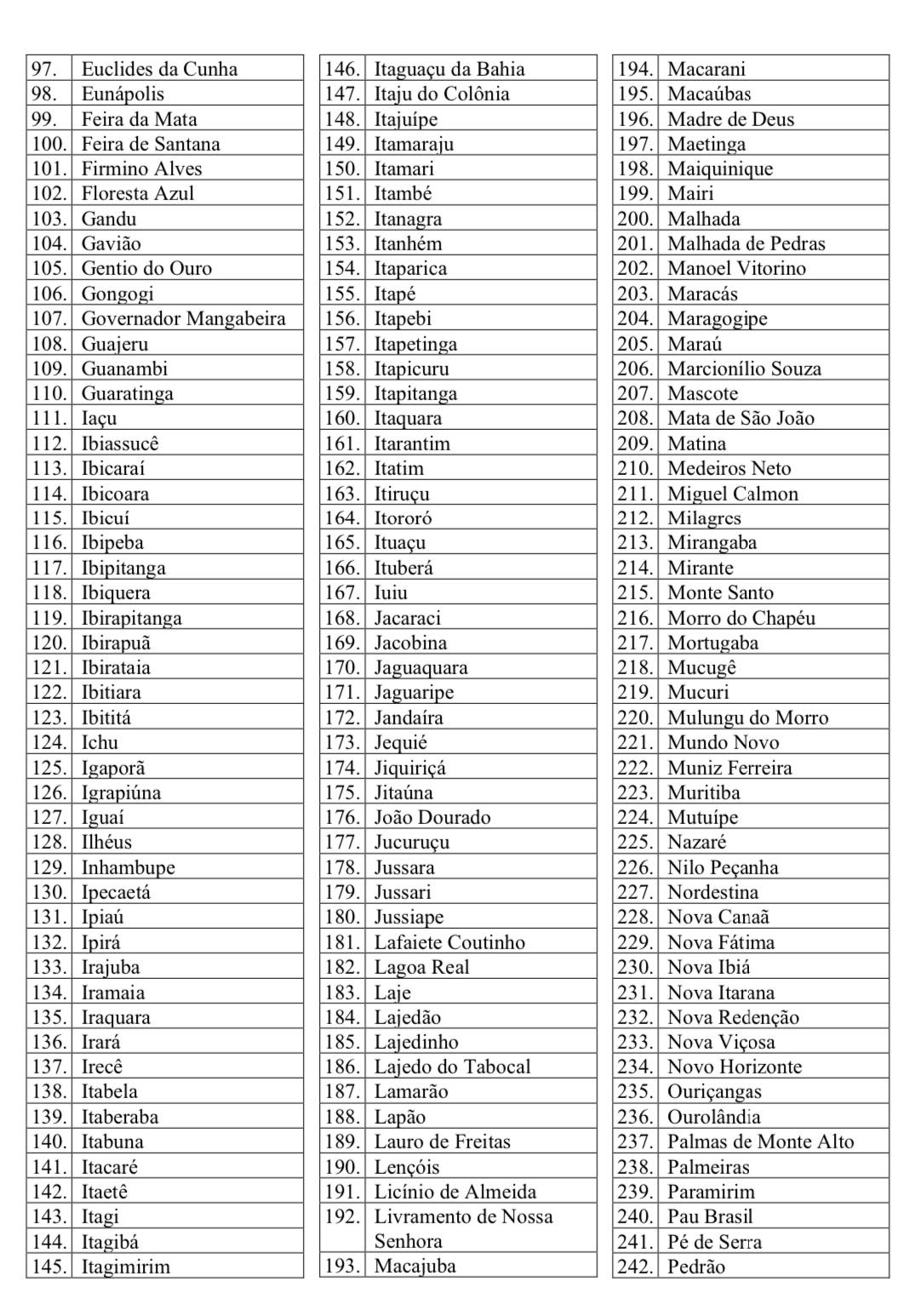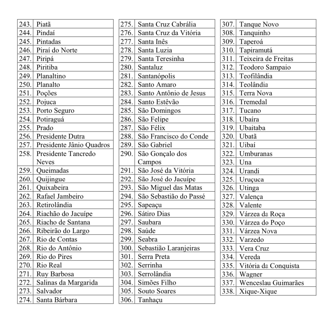 Confira abaixo a lista das cidades: