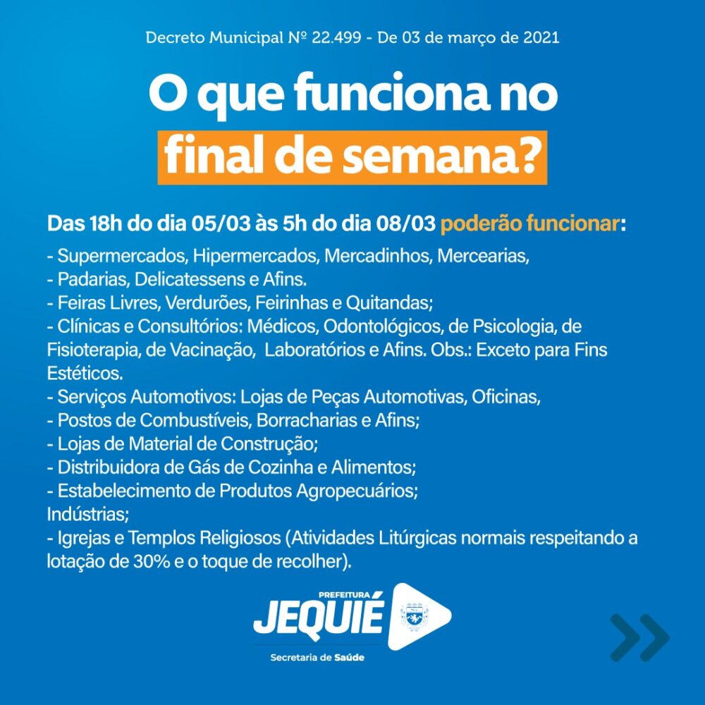 Confira o que vai funcionar e o que estará fechado no comércio de Jequié neste fim de semana