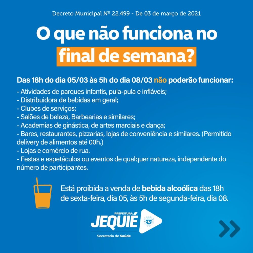 O comércio de Jequié, assim como em outras cidades, vai estar funcionando parcialmente neste sábado (06) e no domingo (07).