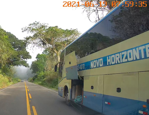 Um homem que estava passando pelo local informou que o bagageiro do ônibus abriu e as bagagens caíram na pista.