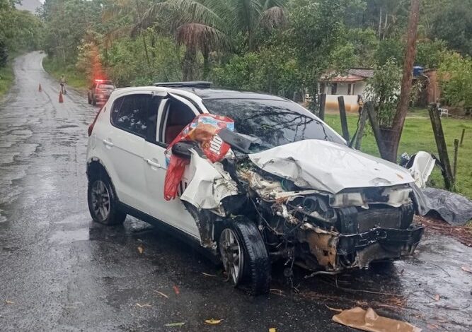Um motorista perdeu o controle da direção e bateu o carro em uma árvore, às margens da BA-547, trecho do município de Apuarema, nesta segunda-feira (20).