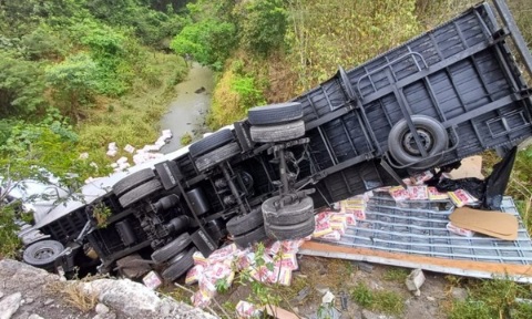 Caminhão com fraldas caiu da ponte na BR-116