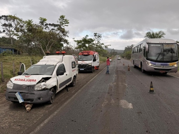 Uma ambulância da Secretaria de Saúde de Ubatã se envolveu em um acidente hoje (04), na BR-330.