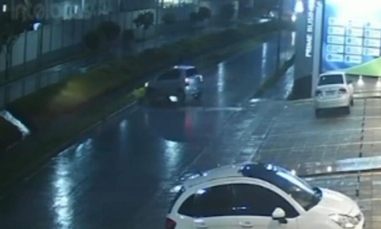 O vídeo abaixo mostra o momento exato em que o carro caiu no local e foi arrastado.