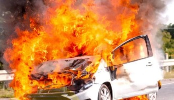 Um carro pegou fogo após bater com um ônibus, na BR-116, trecho do distrito de Serrana, em Brejões, na tarde de ontem (29).