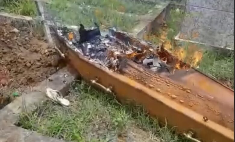 Testemunhas disseram ao blog Verdinho Itabuna que além de deflagrar vários tiros, eles atearam fogo no caixão.