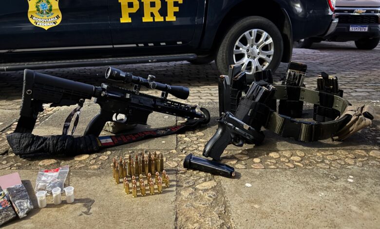 A Polícia Rodoviária Federal (PRF) apreendeu um fuzil e uma pistola na tarde de domingo (15), durante fiscalização da Operação Carnaval 2026 na BR-116, em Vitória da Conquista. A ação ocorreu quando equipes realizavam fiscalização e deram ordem de parada a um veículo de passeio com três ocupantes.