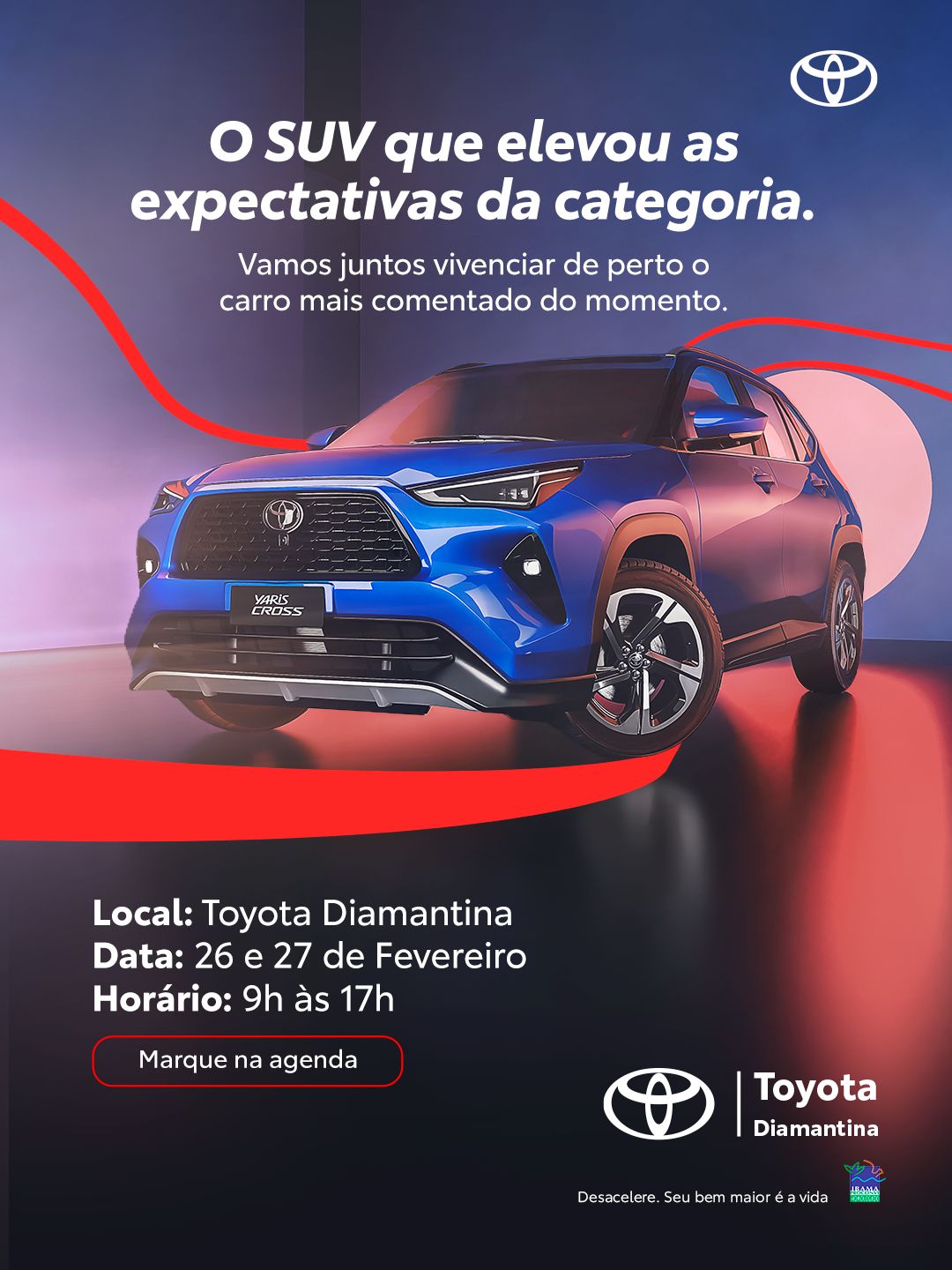 O novo Yaris Cross já está disponível para visitação na Toyota Diamantina, localizada na Avenida Presidente Dutra, s/n, em Vitória da Conquista.