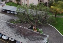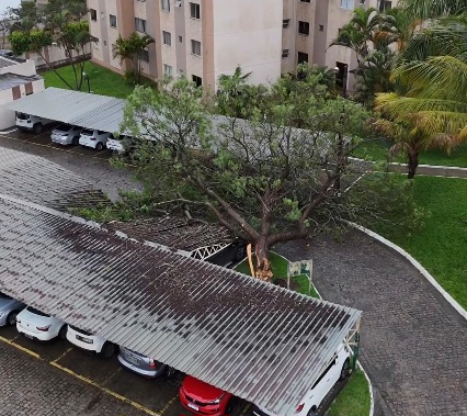 Conquista: Árvore cai e atinge carros em condomínio; veja o vídeo
