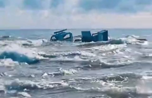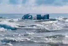 Caminhão com geradores para festa de Iemanjá acabou dentro do mar