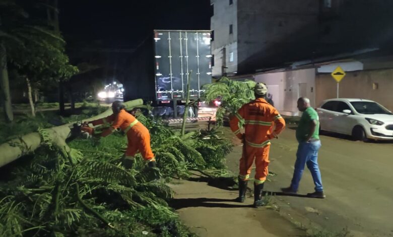 Conquista: Vento forte derrubou árvores e balançou poste e caixas d’água na cidade