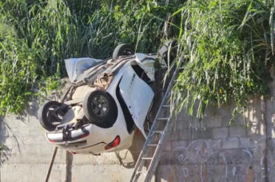 Um carro caiu do estacionamento de um prédio, de uma altura de aproximadamente 17 metros, neste domingo (15), na Feira…