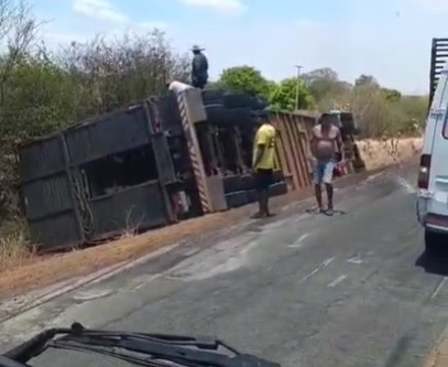 Duas pessoas ficaram feridas após um caminhão com gado tombar na BR-030, entre o distrito de Julião e a cidade…
