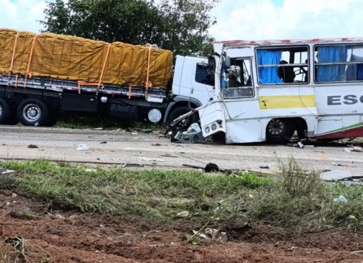 Grave acidente com mortes entre ônibus escolar e caminhão na BR-116
