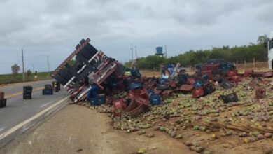 Um caminhão carregado com mangas se envolveu em um acidente ontem (23), na BR-030, nas proximidades da entrada para o…
