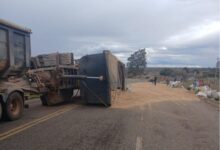 Uma carreta carregada com soja tombou após bater com um carro na BA-026, trecho entre as cidades de Maracás e…
