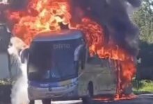 Rota divulga informações sobre ônibus que pegou fogo na estrada; vídeo mostra incêndio