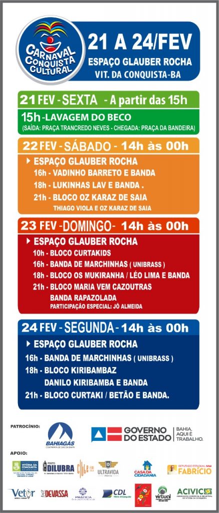 Logo mais, às 15h, será a abertura do Carnaval Conquista Cultural, com a Lavagem do Beco.